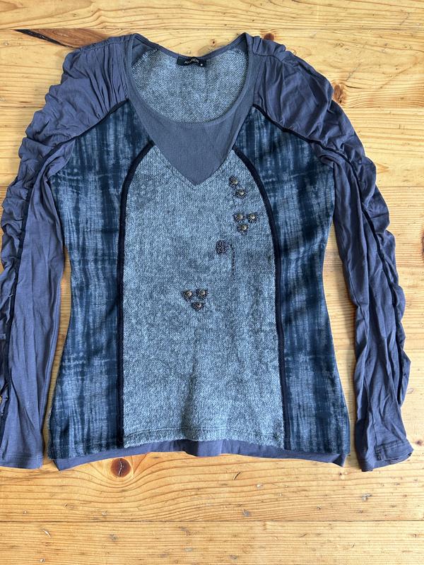 Кофта в хорошем состоянии, комбинированная, интересная, расшитая бисером