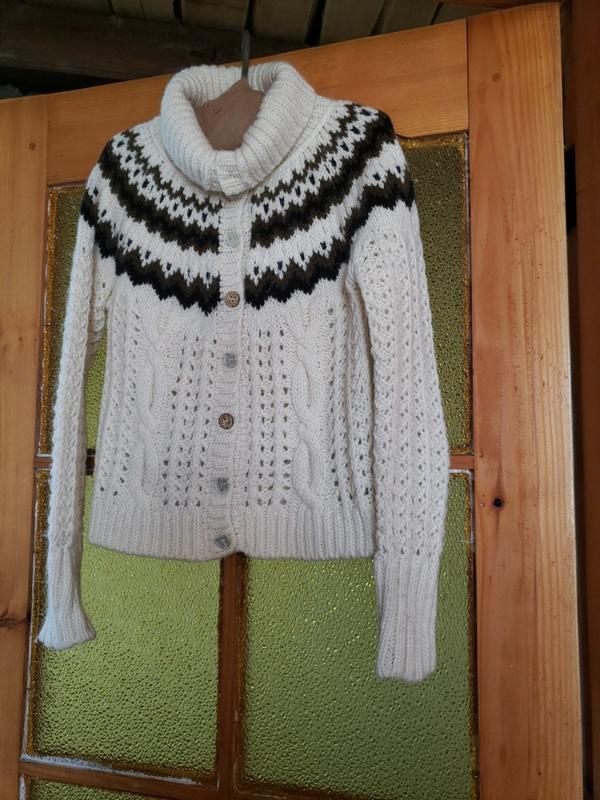 Женский шерстяной сведер 44-46 размера. Ширина по плечам 80 см, ширина в груди 95 см, ширина низа 90 см. Длина 57 см. Длина рукава 59 см, ширина рукава вверху 24 см, внизу 18 см. Приятный на ощупь, теплый. Новый
