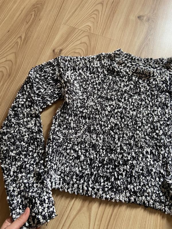Черно-белый укороченный сведрик. Замеры: Длина 44 Грудь 49 Рукав слегка спущен от шва 58