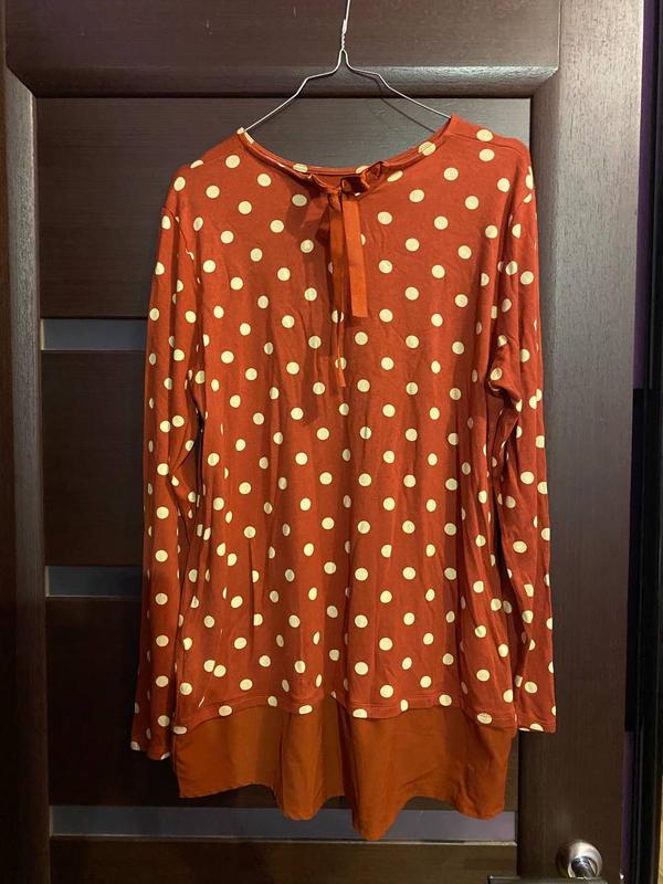 Милая повседневная кофточка большого размера, присутствуют минимальные следы ношения. Размер указан 2xl, замеры пог 56, длина от плеча до низа 72 см.