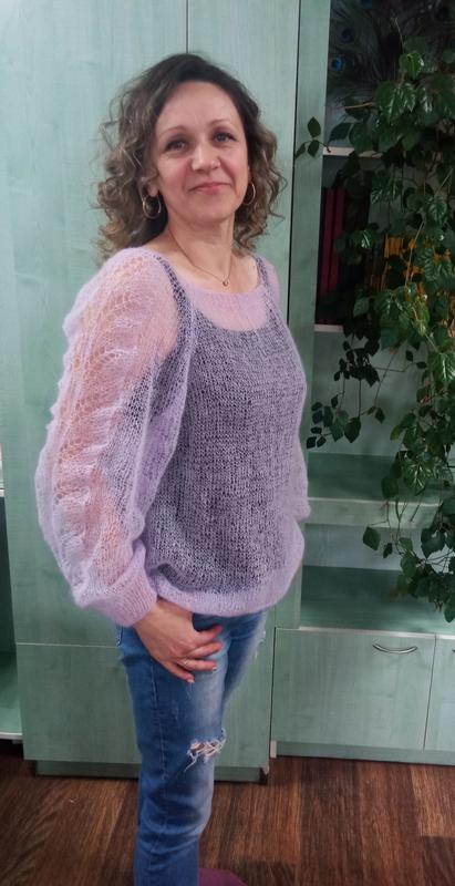 Невесомая кофточка с ажурным рукавом. Кид мохер. Возможно исполнение на заказ.