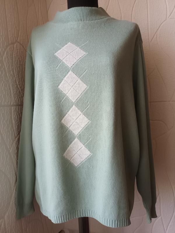 Светр м'який, приємний до тіла. Горловина та манжети не розтягнуті. Дефектів немає, крім як унизу акуратно зашито. На фото представлено. Склад акрил, колір ніжний м'ятний. Заміри - плече 12. 5 см, - довжина рукава 51 см + 5 см манжет, - довжина рукава по внутрішньому шву 42 см, - ширина плечей по спинці 47 см, - довжина по спинці 61 см, - напівобхват по грудях 54 см, - напівобхват талії 52 см, - довжина розрізів із боків 12 см, - довжина бічного шва 34 см. Светр, добре тягнеться. Всі заміри зняті в спокійному стані виробу. ❤ будь ласка орієнтуйтеся на заміри! Відсилання новою поштою та зміцнення за попередньою оплатою на карту. Оплата за пересилання ваша. Накладним платежом не відправляю.