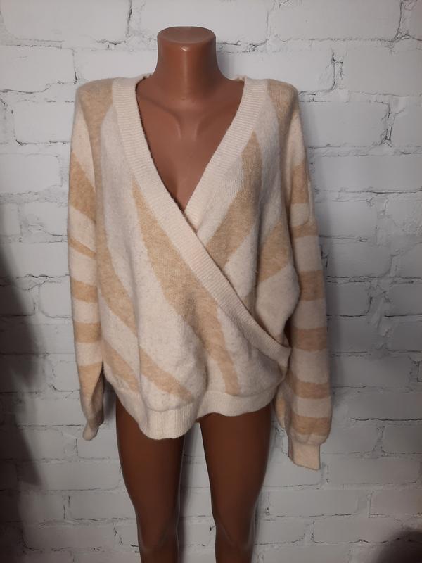 Крутая кофта, мягенькая и тёплая. По бирке размер XL. Длина 56 см, Пог 59 см, Пот 57 см, рукав от горловины 71 см. Тянется. Акрил, полиамид, полиэстер, шерсть, эластан. УП, НП.