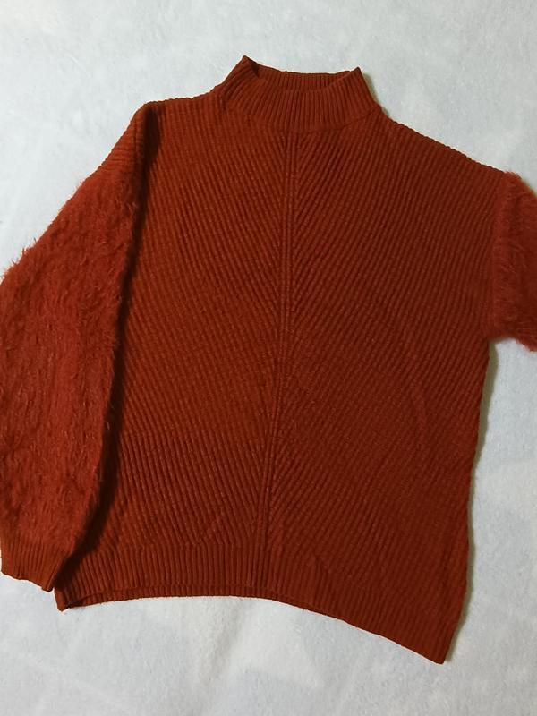 Свитере с пушистыми рукавами. Очень стильный.