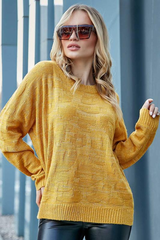 Новинка осені — джемпер оверсайз гірчичного кольору. Тепла модель виготовлена з матеріалу високоякісне в'язання. Такий светр прекрасно поєднуватиметься зі штанами з екошкіри. Купити виріб від виробника гуртом або в роздріб можна на сайті інтернет-магазину ST-Seventeen.