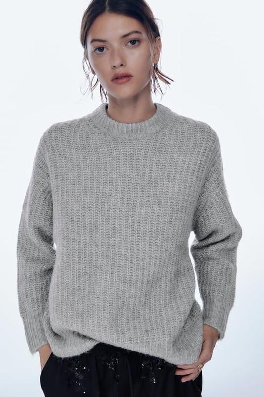Теплий светр із круглим коміром, довгими рукавами та окантовкою в рубчик. Склад: 64% поліестр 18% акрил 10% вовна 5% альпака 3% еластан Розмір S: Довжина по спинці - 59 см Ширина - 59 см Довжина рукава від горловини- 69 см Розмір М: Довжина по спинці - 61 см Ширина - 60 см Довжина рукава від горловини - 69 см