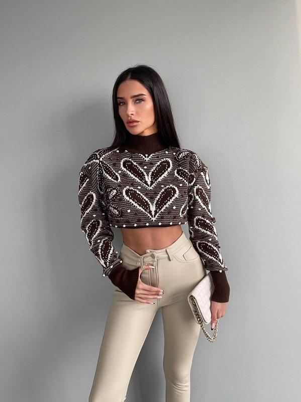 Невероятно стильные и модные укороченные свитера с узором 💗 ▫️Белый, коричневый ▫️Размер единый ▫️Длина 39 см ▫️Ширина 50 см ▫️Высокое качество,Турция