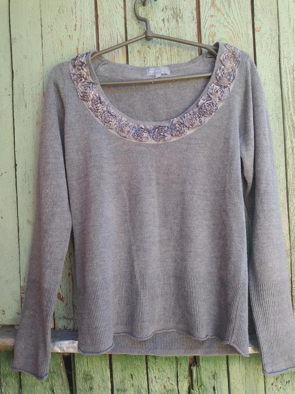 Отличный мягкий свитер, по горловине украшен розами. Шалено приятный к телу,идеальное состояние. Размер указан m, смотрите замеры. Длина 59 см,рукав 60 см, по плечам 36 см, от подмышки до подмышки 43 см, по низу 40 см