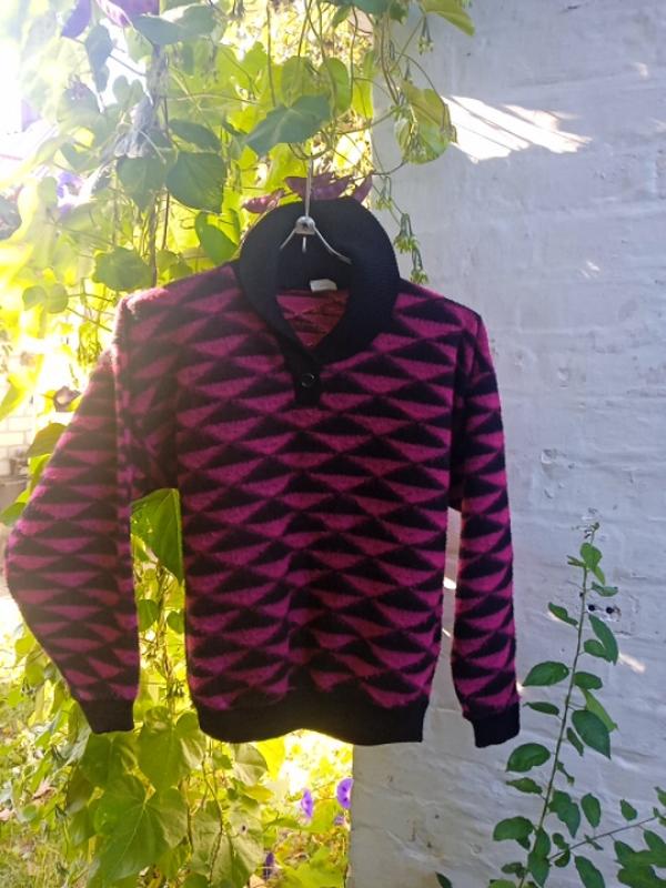 , длина 60, пог 56,пленные, рукав от шеи 70, низ на широкой резинке 40-42, мягкий,акрил, состояние хороший,цвет яркий бордо с черным,и,интересован воротник, Лондон.