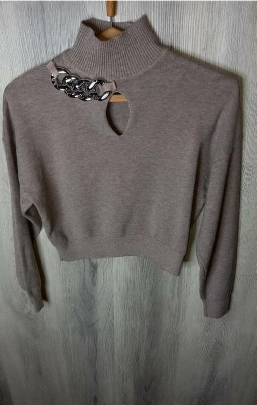 Новая кофточка (без бирки) с стильной цепью. Ткань - машинная вязка, кашемир очень тепленький, не колется. дефектов нет размер универсальный 42/46 ЗАМІРИ пог - 52 см длина - 45см спущенный рукав. цвет – мокко.