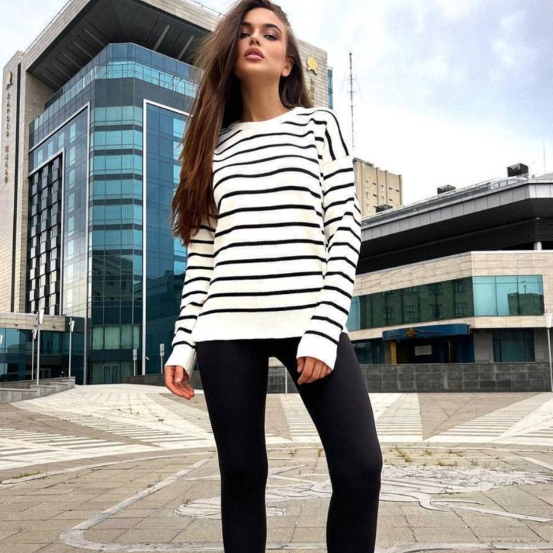 Теплый полосатый свитер в стиле оверсайз 🏷 Цена - 750 грн ⠀ ▫️Размеры: универсал 42-46 ▫️Производство Турция ▫️В‘язка - 50% котон, 50% акрил (м’який, не колеться) ⠀ Замеры: ОГ до 106 см Ширина по низу свитера по резинке 50-51 см Длина 60-61 см Длина рукава от горла 70-71 см ⠀ Модель 68Ammibebbi