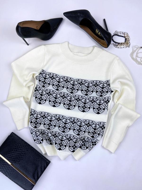 Светр в молочному кольорі - сідає дуже добре, не кошлатиться, після прання не деформується, в одному розмірі - сідають на 44-48 (S-L), заміри: ширина 42 см, довжина 59см, довжина рукава 63см