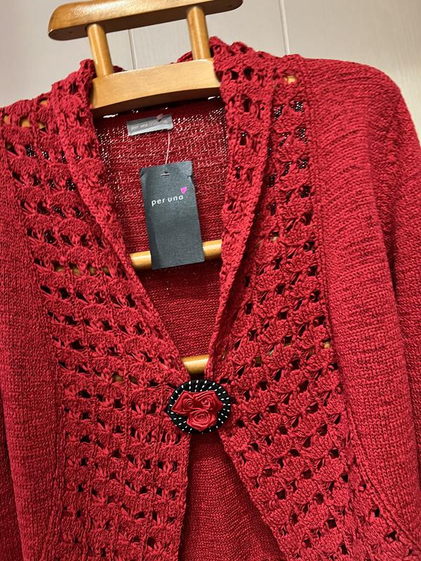 В наличии красивая кофточка фирмы M&S. Размер указан XL, по замерам идёт на 18. Состав: 40% котон и 60% полиестер..ткань мягкая и приятная к телу, хорошо тянется. Полуобъем в груди - 62 см. Длина-67 см. Плечи - 47 см Длина рукава - 60 см. Полуобъем в бедрах-62 см и ещё тянется