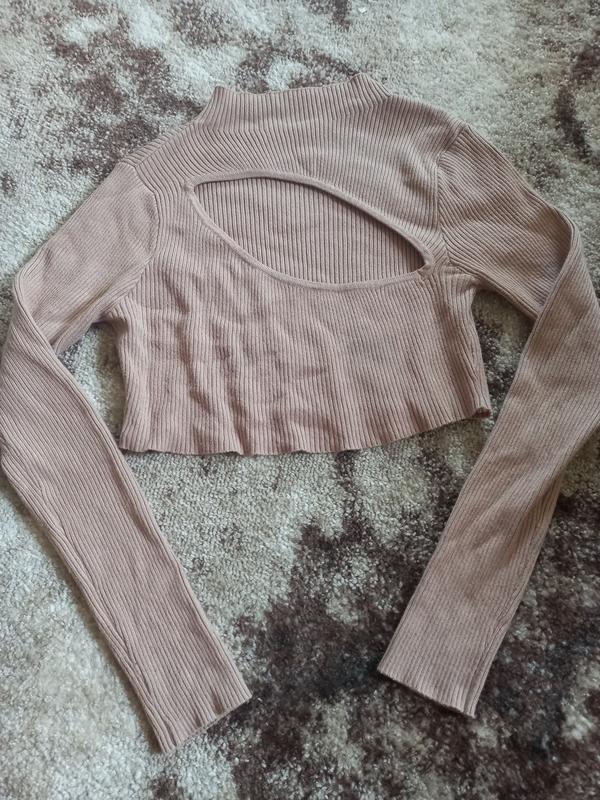 укороченный гольф в рубчик, с вырезом на декольте. на объем 85-90. состояние хорошее, близкий к новому приятный цвет мокко