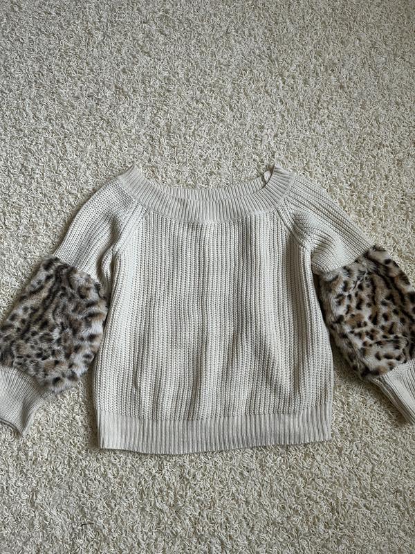 Свитер в молочном цвете со вставками на рукавах. Размер ХС-С. Одевала всего раз, не подошел размер. Стан нового.