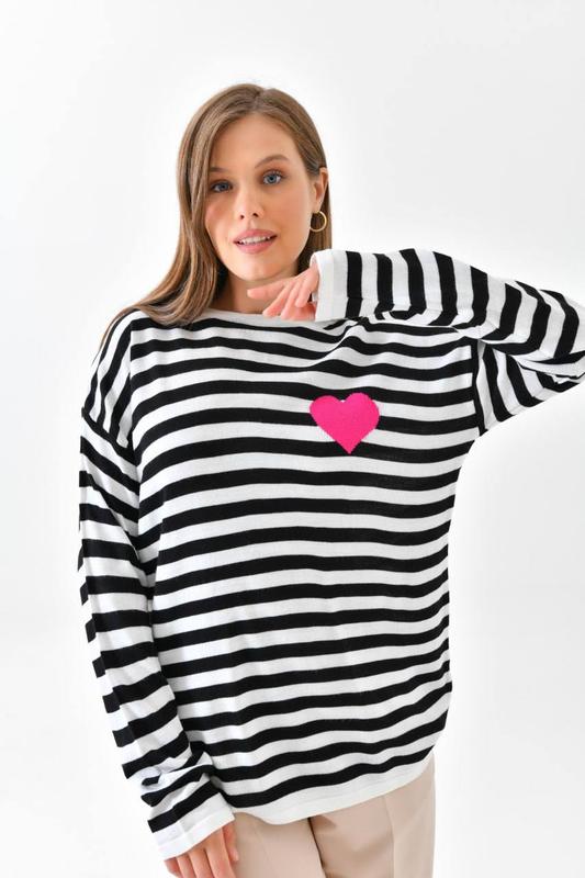 Свитер в черную полоску станет отличным выбором для гардероба на холодный период года. Такой принт легко сочетается с брюками, джинсами и даже юбками Удлиненный пуловер в стиле оверсайз. Выполнен из высококачественного турецкого материала. Модель спущенной линией плечевого шва. • Размер универсальный 214257