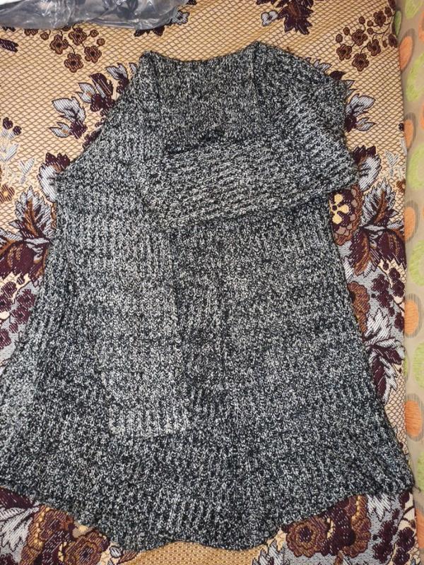 Удлиненный свитер свободного фасона в отличном состоянии, очень теплый. Низ ромбовидной формы Основные замеры на фото, пишите - отвечу на ваши вопросы.