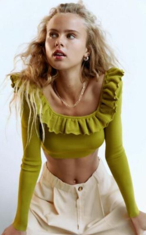 кофточка с рюшей от Zara красиво тянется, садится по фигуре Размер:М Замеры:ПО груди 36 см, длина 40 см, рукав 67 см