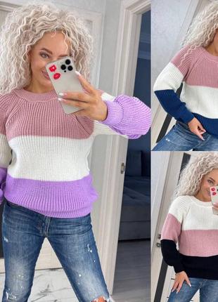 Светрик Модель 5039 Состав: 30% акрил; 70% вовна. 🧶🐏 Размер 42-48 (универсальный) Кольори: пудра-молоко-джинс; молоко-пудра-чорний; пудра-молоко-бузок Замеры: Длина рукава от горловины: 68 см. Ширина свитерика 47 см, в натянутом состоянии 56 см Длина свитерика: 57 см от середины переда, 67 см от плеча