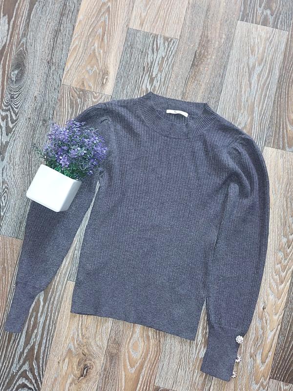 Красивый свитерик, с пуговицами на манжетах. Стан красивый, но на одной из пуговиц отсутствует камушка, это совсем не заметно. Размер s-m. Приятная ткань.