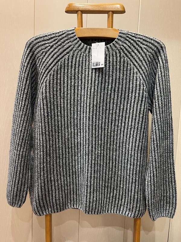 В наличии красивый свитер фирмы H&M. Размер указан S, но по замерам больше идёт на 12...будет чуть оверсайзом и 14...будет в размер. Состав: 42% котон, 33% акрил, 14% полимид, 7% шерсть, 2% альпака и 2% эластана ...нитка тёплая, хорошо тянется. Полуобъём в груди - 54 см и ещё тянется Длина - 64 см. Длина рукава от ворота - 72 см. Полуобъём в бедрах - 54 см и еще тянется