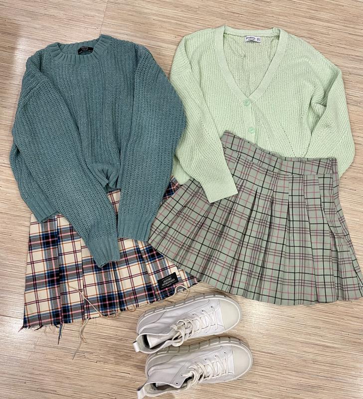 Вещи все новые, без бумажных броков Размер s, но кофты оверсайз, поэтому будут и на М Юбки по 600 грн Кардиган- 800 грн Свитер- 800 грн