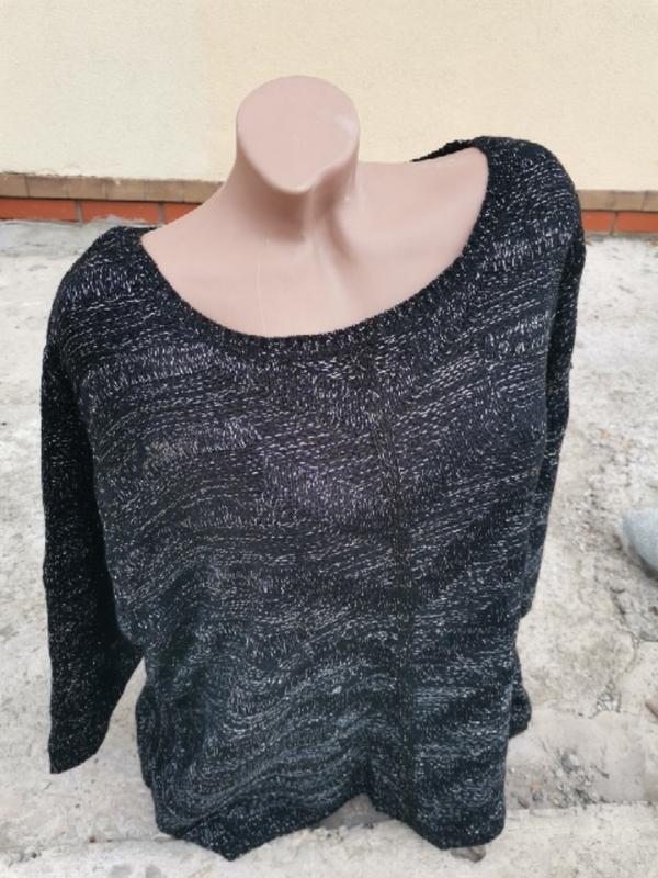 Кофта жіноча в'язана, оверсайз, чорна з срібною ниткою, розмір 54/56, довжина по спинці 66, довжина рукава 46 см, ширина під проймой 72 см, ширина по низу 78 см