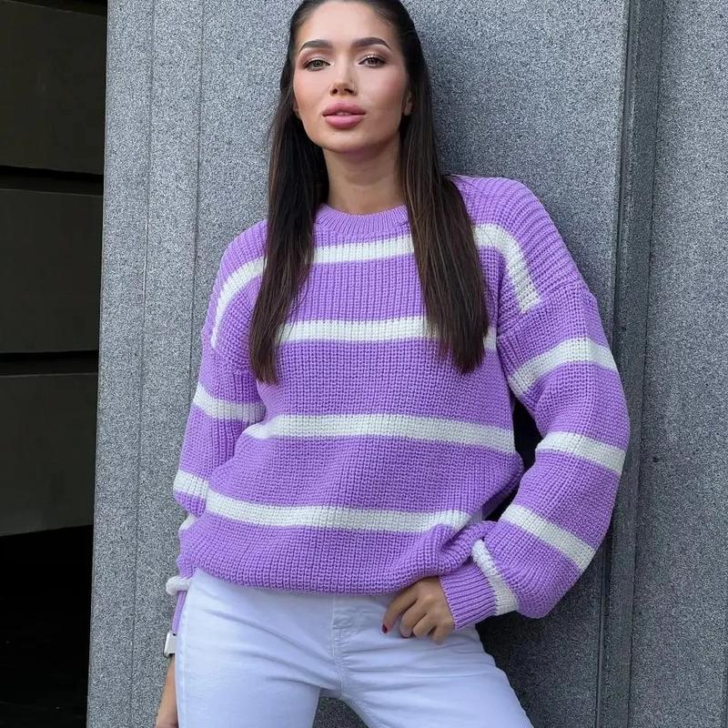 🌬Объемный свитер в полоску - актуальная модель сезона. Выполнены из смесового трикотажного полотна на основе хлопка👌 🎨Цвета: молоко с черной полоской, молоко с пудровой полоской, черный с пудровой полоской, сирень с молочной полоской, пудра с черной полоской, джинс с молочной полоской 🍃Материал : Вовна 70%,30% Акрил ❗❗Размер универсальный ✔Замеры:⤵️ Объем груди/бедер:102-124см Длина 62-64 см, Длина рукава 72 см от горловины. (Вязкая хорошо тянется) 💳 Цена 1290грн АртHN4676 ‼️Сбор заказа 1-3 дня после оплаты, обмен и возврат возможны в течение 14днов!!️ 📦 доставка НП за наш счет ✔