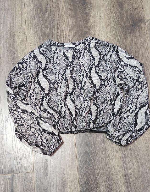 Очень эффектная и удобная. В идеальном состоянии. Размер указан S, но подойдет на М. Рукав приспущен. Тканина трикотаж.