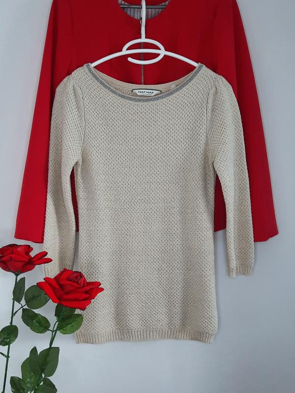 Кофточка с серебряной нитью Naf naf. ⚘Плечи 35 см. ⚘Рукав четвертной 46 см. ⚘Ширина полуобхват 37 см. ⚘Длина спереди 62 см. Размер на наборе XS на S также будет.