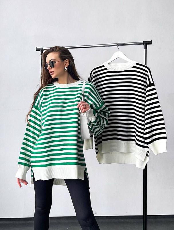 НОВИНКА Полосатый свитер-туника в стиле Oversize Модель # Д₽/Ч 1004 Производство - Турция В‘язка - 50% акрил, 30% вовна Мягкий, не колется Размеры - оверсайз Объем груди - до 120 см Объем бедер - до 120 см Длина впереди от лини плеча до низа - 67-69 см Длина сзади от линии плеча до низа - 73-75 см Длина рукава от горловины - 71 см Ціна - 730рн❣