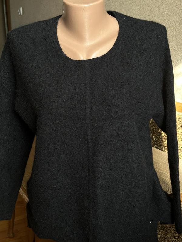 Гарної якості приємний та ніжний на дотик неймовірно мʼяка та комфортна Фасон вільний теплий зовсім не колючий Нажаль фото не передає справжнього кольору насичено чорний Базова модель що не виходить із моди впишеться в будь-який образ і служити вам довгий час 100 % Кашемір без будь яких нюансів куплений 🇺🇸 Заміри Довжина светра 61 смперед зад67 см Довжина рукава від шиї 64см ПОГ 57см