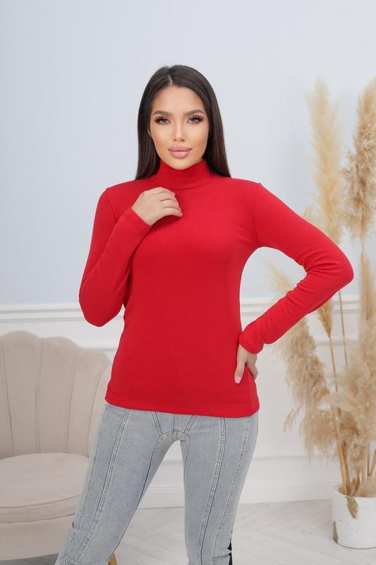 Жіночий гольф (на флісі) №025 Розміри: 42-46 (універсал) Тканина: трикотаж на флісі Параметри моделі: зріст 170 см, 88/64/93. Кольори: сірий, темно-сірий, червоний, запорошена троянда Вимірювання виробу: ПОГ -37 см довжина виробу – 57 см; довжина рукава – 55 см