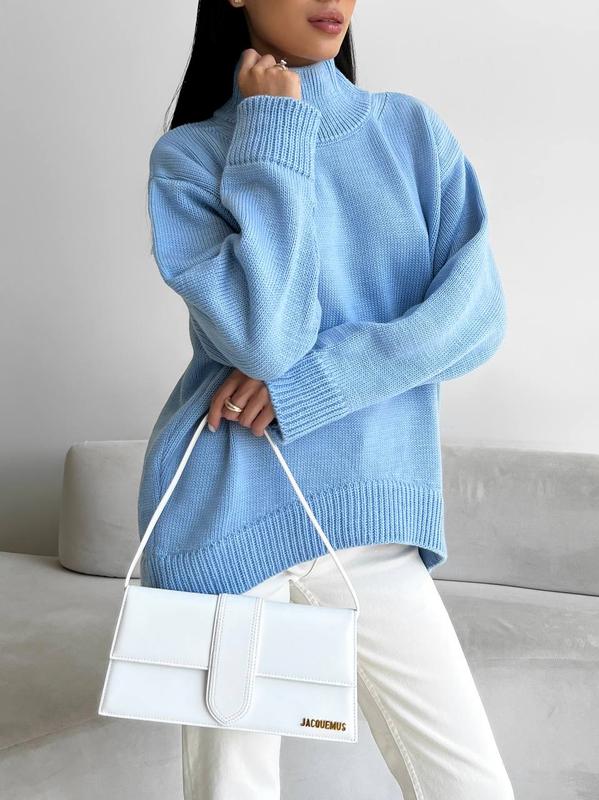 Голубой свитер под горло оверсайз женский