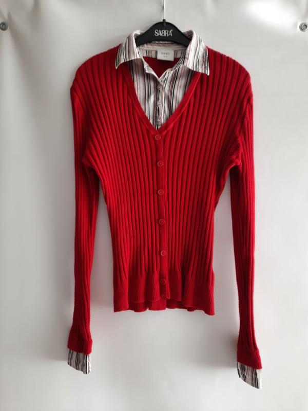 Светр в рубчик Next Розмір 14 Склад тканини - 80 % віскоза, 20 % нейлон ПОГ - 45 см, тягнеться ПОТ- 33 см Низ - 40 см Плечі - 40 см Рукав - 61 см Довжина - 55 см