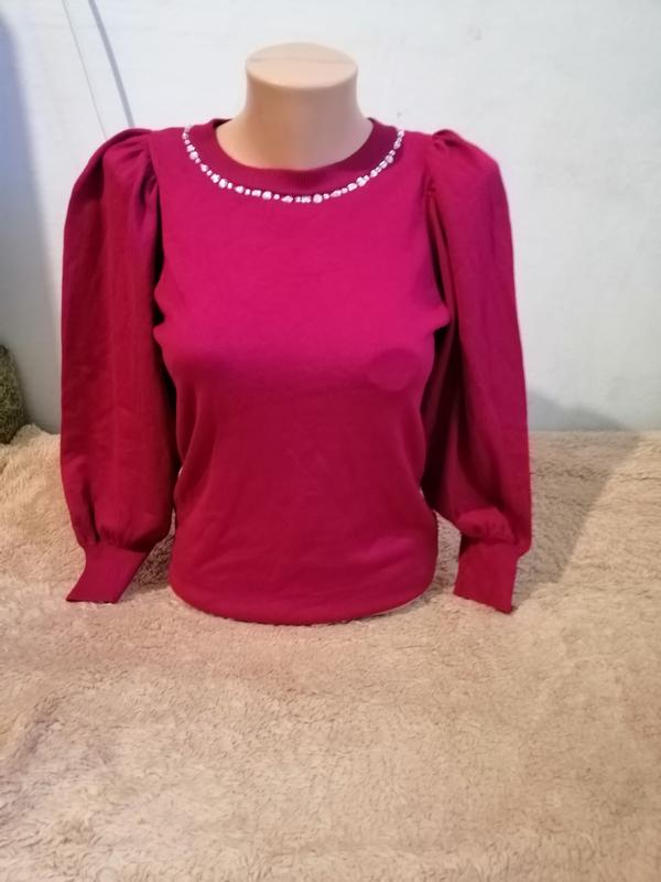 Очень нарядная кофточка в идеальном состоянии вишневого цвета, без дефектов и пятен. Размер 46-50 возможно будет на 52-й. Можно одевать под юбки, брюки и даже джинсы, под что будет выглядеть красиво, вы не останетесь без внимания.