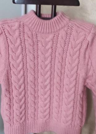 розовый вязаный свитер в узор, косы,. молодежный, стильный и очень теплый. состояние идеально.