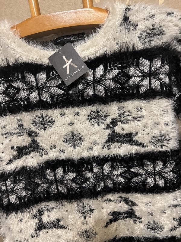 В наличии красивый свитер фирмы ATMOSPHERE. Размер указан 8, но хорошо сядет и на 10. Состав: 67% нейлон и 33% акрил, нитка очень мягкая и приятная к телу, хорошо тянется. Полуобъём в груди - 50 см и ещё тянется Длина - 54 см. Плечи приспущенные... Длина рукава от ворота -63 см. Полуобъём в бедрах -48 см и ещё тянется
