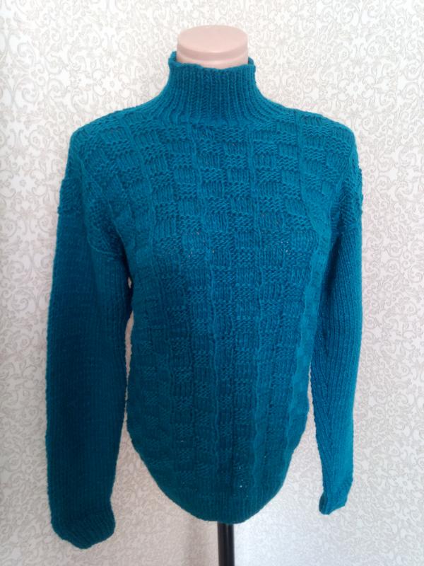 Свитер женский размер 46-48. Цвет пряжи морская волна, акрил+шерсть. Мягкий и нежный. Длина 62см, ширина 48 см.
