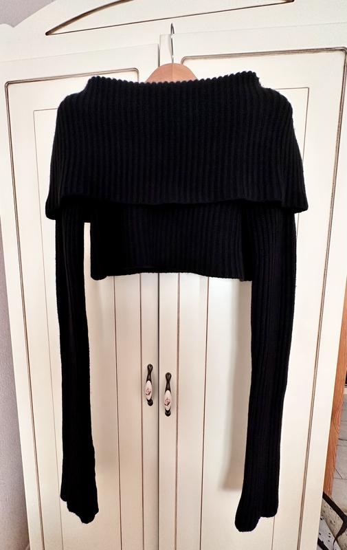Укороченный свитер премиального бренда. Отличное состояние. Бирки нет, но в составе преимущественно шерсть. Интересный удлиненный рукав, который можно присборить или подкатить.