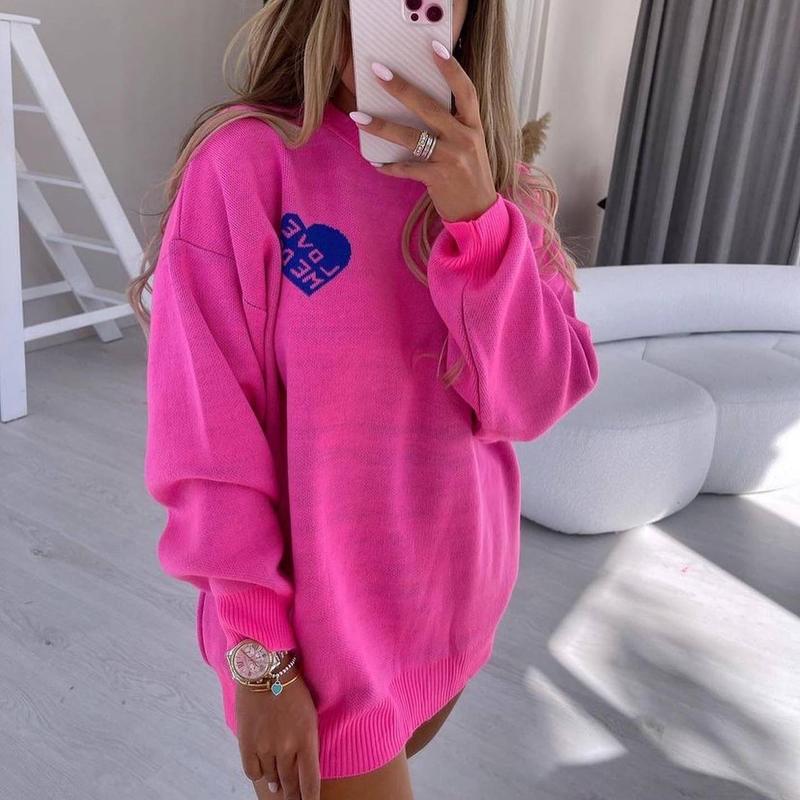 🍡Светер -туника оверсайз с сердечком 🔝🔝🥰🥰 Машинная вязка, акрил Производитель Турция 🇹🇷 качество🔥 Размер единый (42-48),
