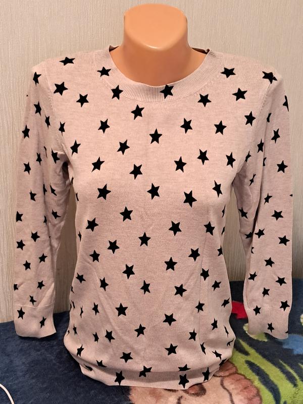 свитер новый,материал коттон плотный красиво тянется, очень приятный и нежный к телу рукав немножко ниже 3/4 горловинка плотная размер XS,S