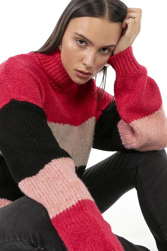 Теплий светр Miss Poem М'який, теплий светр із горлом. Виміри S/M: ПОГ - 57 см. Низ - 45 см. Рукав - 57 см. Довжина від брами - 65 см.