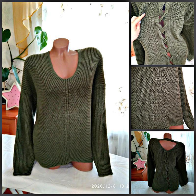 Оригинальный свитерик размер М (болеемерит) длина 70 см, рукав 60 см пог 70 см с уда оригинальная шнуровка состояние отличное