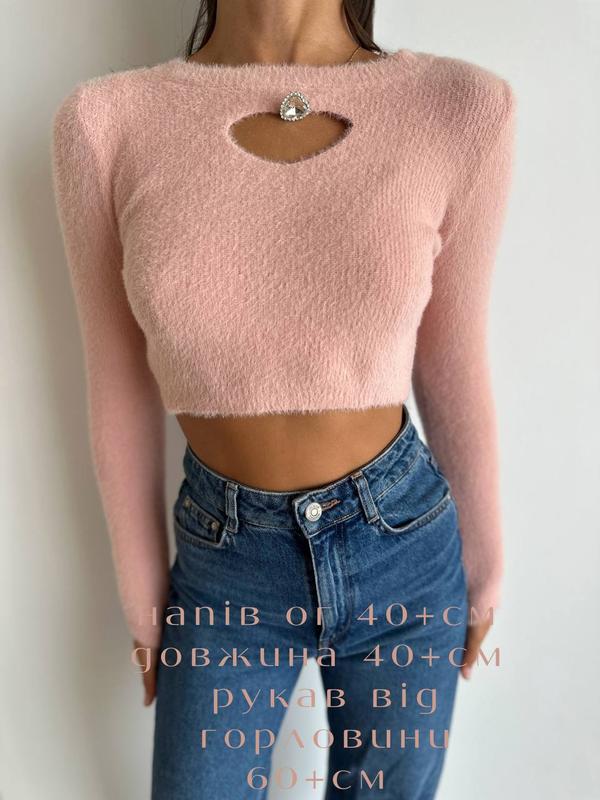 🧊🧊🧊НОВАЯ КОЛЛЕКЦИЯ 🧊🧊🧊 Стильный мягкий ангоровый укороченный свитер с украшением Материал - агора травка 6 забарвлень: Черный Пудра Нежная лаванда Белый Желтый Красный Цена 565 гр