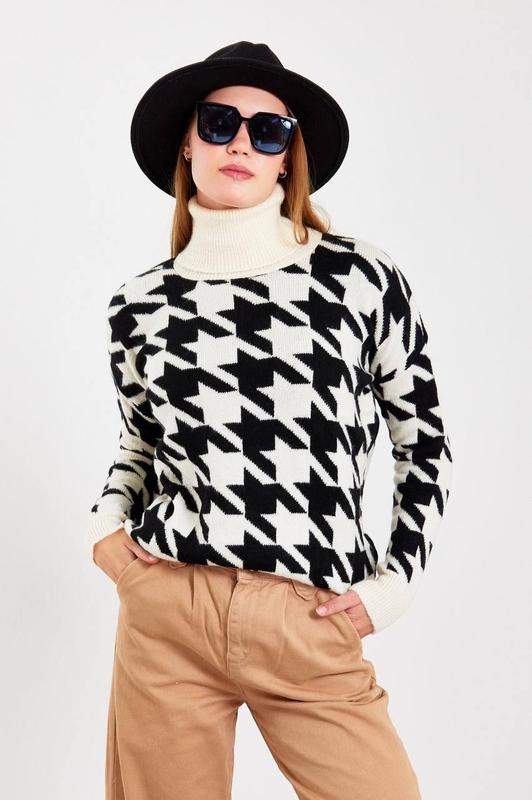 Светр Модель 3024 Виробництва Туреччини Тканина дрібна машинна в'язка Розмір 42-52 універсал Виміри: ОГ-60см Довжина-60см Довжина рукава від горловини-73 см Похибка виміру +~1см Шалено красивий светр з високою горловиною, шикарним принтом гусяча лапка в найактуальніших кольорах - молоко milk та кемел camels. Ніжний та приємний до тіла, дуже теплий та неймовірно стильний Крій оверсайз, подовжений, висока горловина з підворотом