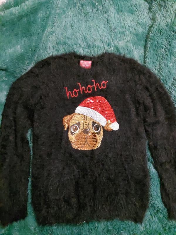 свитер с мопсом, мягкий ,приятный ,тёплый смотрится очень красиво размер S-L хорошо тянется ну очень хорошо держит форму ,рукав 63,64 см,резинка 42см тянется 59см . спина 63,под руками 47,тянется 63.очень красный
