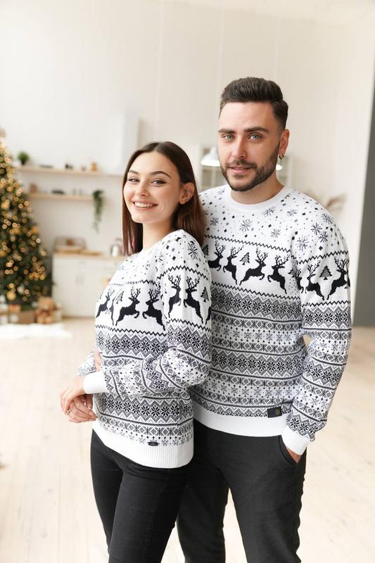 хар.др.7.10 Новогодний свитер с оленями 🦌 Материал: 70% шерсть, 30% акрил (не колется, очень приятный к телу) Цвет: бордовый, темно-синий, джинс, белый, красный Размер женский: С-М, Л-ХЛ Размер мужской: М, Л, ХЛ, ХХЛ