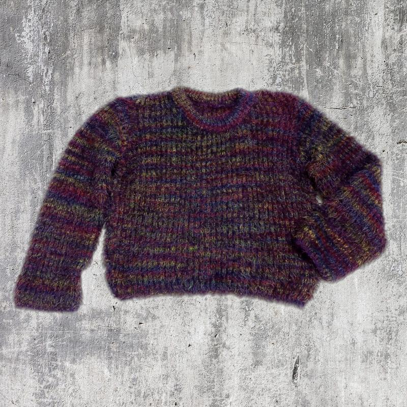 Подписывайтесь на мою страницу. Вкорочений светр травка Цвет фиолетовый с разноцветной нитью. Без броков По плечам 40 НОГ 44 Низ 37 Рукав 45 Длина 42