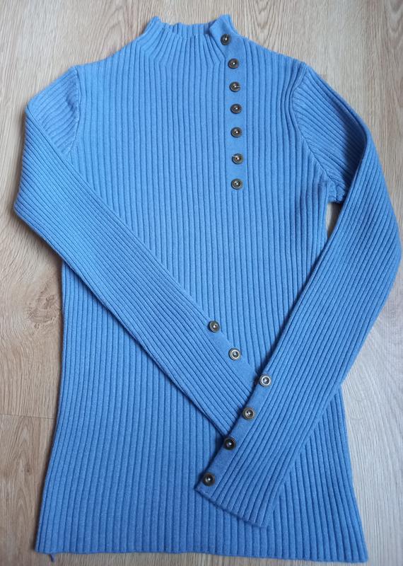 Гольф в рубчик, розмір S, колір насичено голубий, ідеальний стан. Довжина 58 см, плечі 33 см, (тягнуться), рукав 56 см, ширина 34 см (тягнеться).